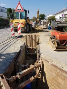 In der Bonhoefferstraße sowie Im Glonnfeld wird daran anschließend, d.h. voraussichtlich ab Mitte April, die vorhandene Trinkwasserleitung erneuert. Ursächlich hierfür ist eine Vielzahl der Wasserrohrbrüche in den letzten Jahren, die zu erheblichen Betroffenheiten der Anlieger geführt haben. Dieser Trinkwasserleitungsabschnitt ist Bestandteil der Ringversorgung und damit von besonderer Wichtigkeit. Auf Grundlage einer in 2023 durchgeführten Rohrnetzberechnung ist es glücklicherweise möglich, dass die Erneuerung der Trinkwasserleitung teilweise grabenlos erfolgen kann. Grabenlos bedeutet, dass die Oberfläche nicht geöffnet werden muss und kein Rohrgraben erforderlich ist. Definitiv geöffnet werden müssen jedoch in jedem Fall die Punkte, an denen die einzelnen Hausanschlüsse an die Hauptleitung angebunden sind. An diesen Punkten ist der vorhandene Hausanschluss von der alten auf die neue Trinkwasserleitung vorzunehmen. Die Versorgung der Verbraucher wird für die Dauer der Arbeiten über eine dafür eigens installierte Notversorgung aufrechterhalten.